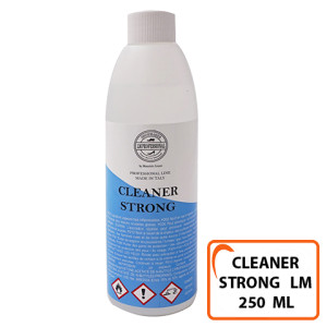 LM CLEANER STRONG è uno SMACCHIATORE. Elevate capacità detergenti per rimuovere grasso e sporco. Può essere usato puro. Specifico per oggetti in pelle e pelle scamosciata. Utilizzabile come Pulitore prima dell’applicazione del collante per TPU (materiale termo-plastico). A base di solventi, utilizzare guanti ed assicurarsi di essere in un area ventilata. UTILIZZABILE SU: CALZATURE, CINTURE, BORSE, DIVANI, SEDILI ETC. Testare sempre il prodotto in un punto poco visibile del capo o della calzatura da trattare. Formato 250 ml.