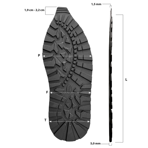 Suola piatta Jumping: confortevole, flessibile, leggera, antiscivolo, con un'ottima resistenza all’abrasione. Grazie alla sua forma molto ampia, ritagliabile a seconda delle varie esigenze la suola Jumping è particolarmente indicata anche per applicazioni ortopediche.