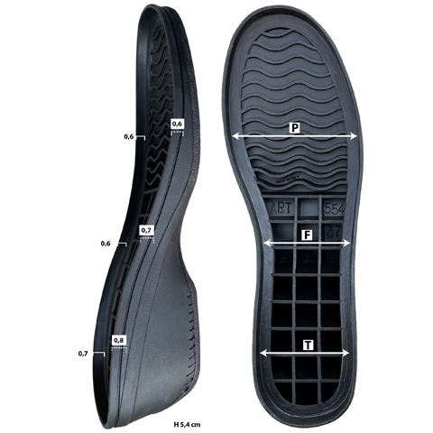 Suola ad incasso in gomma; flessibile, leggera e facilmente incollabile.
